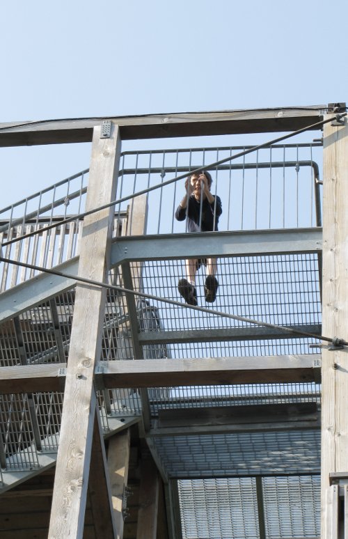 La tour d’observation de 5 étages donne une vue à couper le souffle, mais il faut grimper beaucoup de marches… et ne pas avoir peur de la légère oscillation qu’on sent au sommet. Évidemment, Frédéric s’empresse de grimper au sommet, ce qui cause un peu de tourment à sa maman!