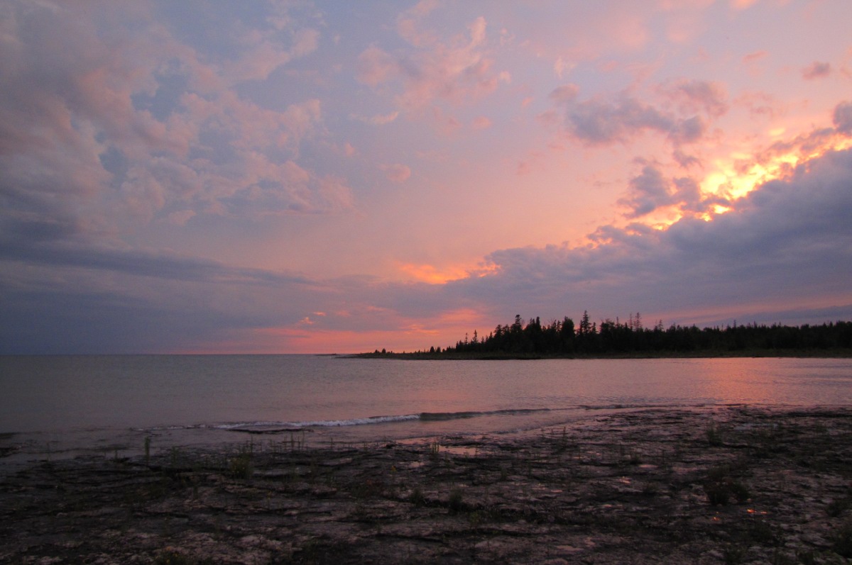De notre petit B&B a Haran Point, les couchers de soleils sont magnifiques. PS, ça fait aussi de beaux fonds d’écran… Sur notre plage rocheuse, les arbres sont rabougris, frappés par les vents.