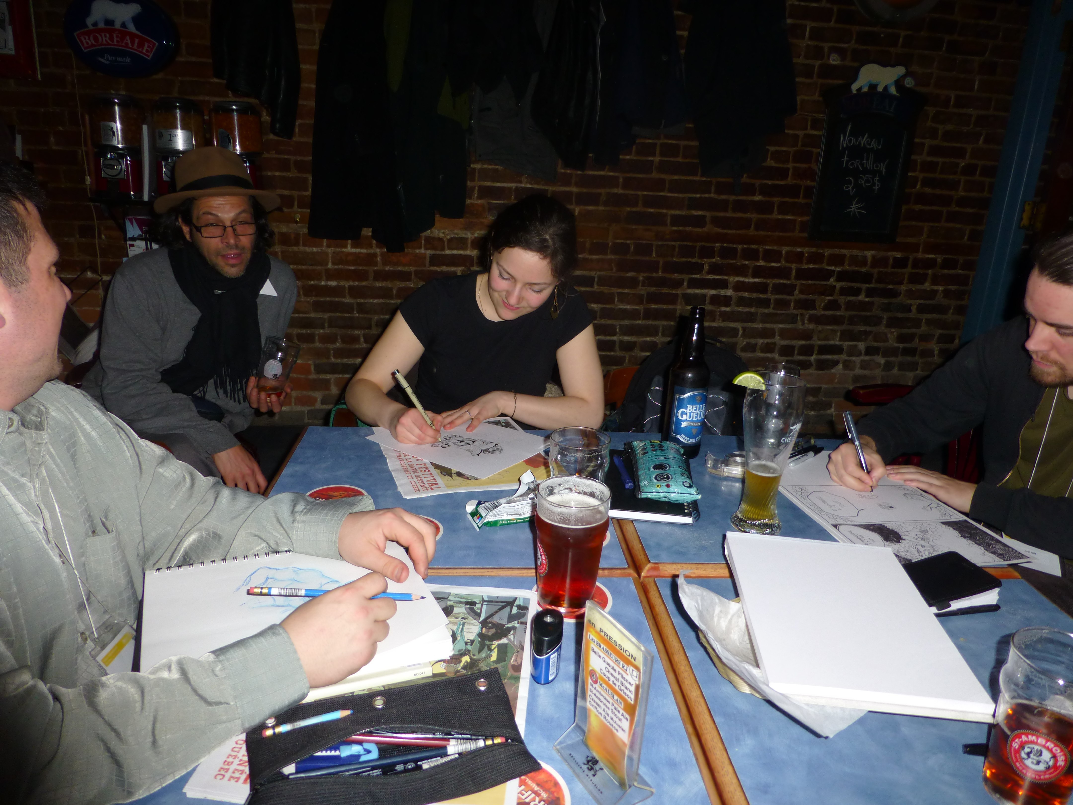 Aperçu de la table de l’impro-BD au FouBar le 11 avril dernier. Image