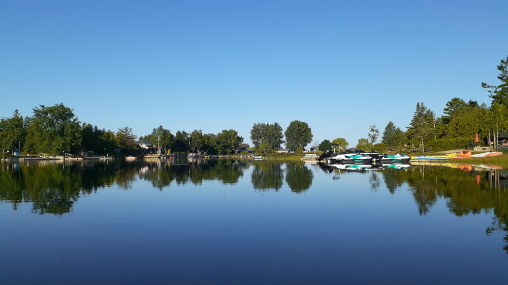 Je recommande chaudement le Kit Wat Marina au bord de la rivière Sauble Falls (cette photo vient du site de l’hébergement)! On avait la chambre en bas en face du pot de fleurs. Et on peut utiliser les canots, kayaks et paddle boards (avec veste de sécurité) toute la journée! Le bon mari a beaucoup aimé cet endroit, près de l’eau, et lui aussi a pris plein de photos!