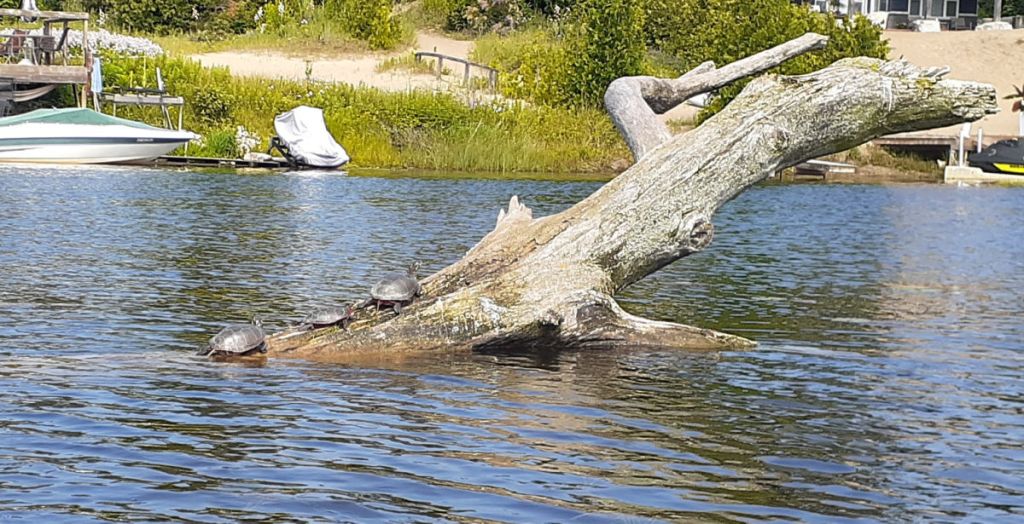 J’y ai vu des animaux comme ces tortues peintes qui se réchauffent sur une vieille branche. Se promener en kayak avec des jumelles pour observer les oiseaux, et un téléphone pour prendre les photos est risqué!
