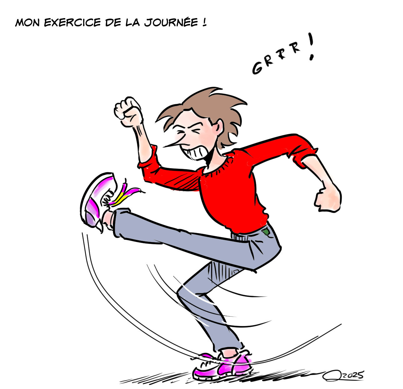 Ma caricature montre que les microplastiques se cachent partout, y compris dans nos vêtements issus de l’industrie du pétrole. À chaque lavage, ces polyesters et nylons relâchent des PFOAs dans l’eau. Un autre problème qui va nous donner des maux de tête, et des compagnies qu’il faudra encore tenir à l’oeil!