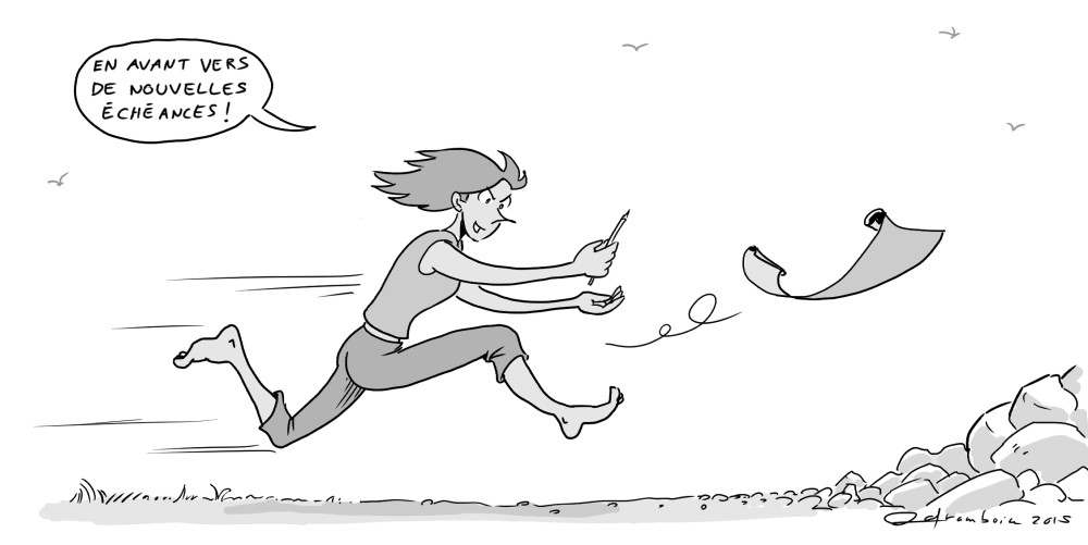 Cette année, j’ai sauté le salon du livre de Montréal, pour raison de fatigue et de multiples projets uu-uurgents ! Faire une journée complète de train pour me pointer le nez à une table de dédicaces et regarder la foule passer en vitesse ne m’intéresse pas. Idem pour les RVBDG, un festival que j’adore, mais cette année je n’ai pas pu aller. J’irai l’an prochain, si j’ai une nouvel album.
