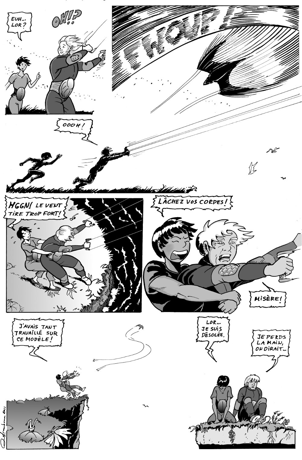 Dans le deuxième roman, Les vents de Tammerlan qui se déroule sur une planète-océan, on fait connaissance avec une Adalou adulte, une guide de cerf-volant qui possède une grande maîtrise de son art, et enseignait à des élèves. J’ai voulu explorer sa jeunesse dans cette bande dessinée, laquelle me permettait aussi d’explorer le monde que je mettrais en vedette dans le cinquième livre de la série, qui se déroule sur la planète natale d’Adalou.