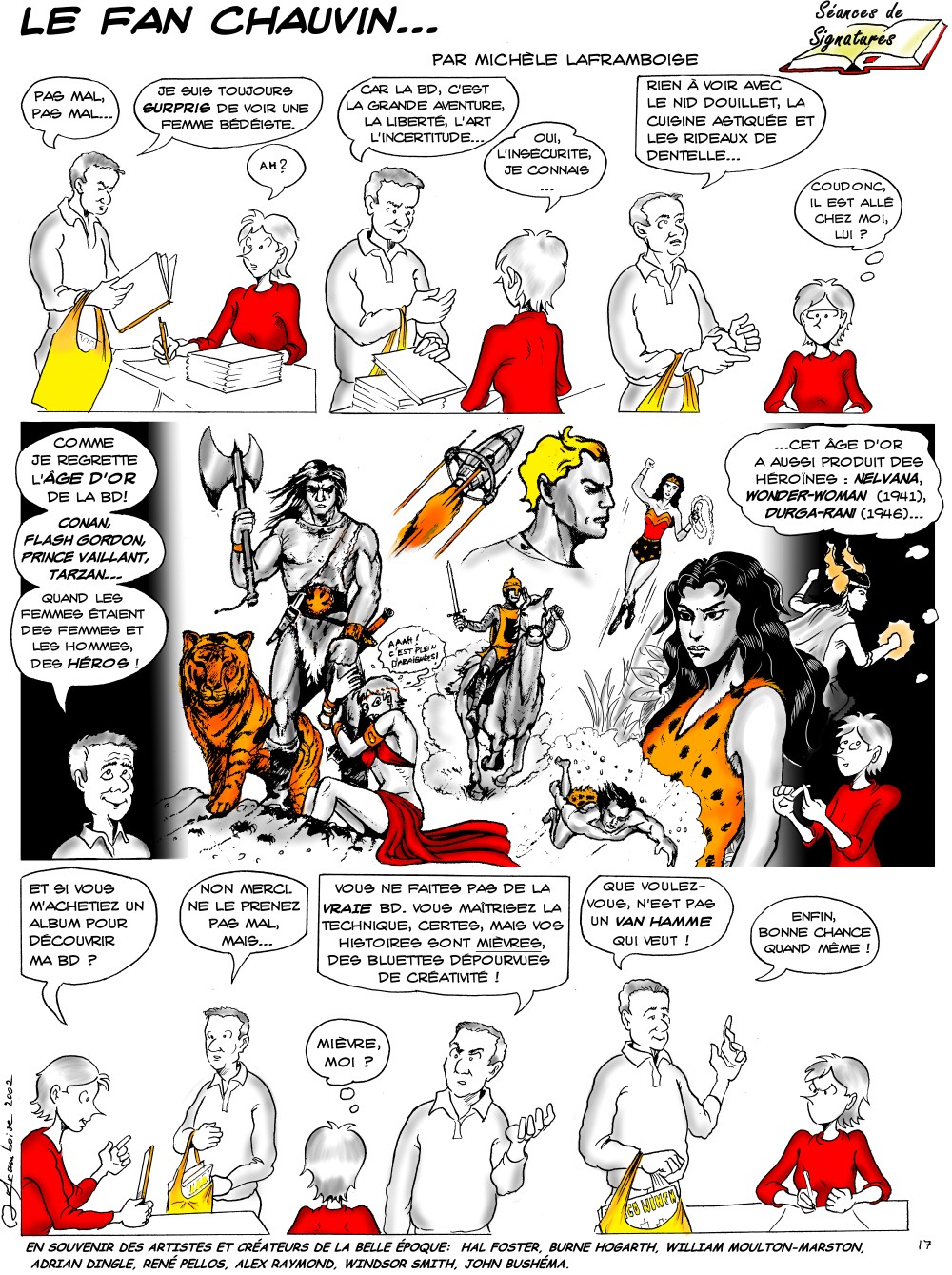 Même moi, je pèche, car je peux nommer, de mémoire, plus de dessinateurs que de dessinatrices! Surtout si je me fie aux revues de BD, qui mentionnent peu le travail des auteures, moins talentueuses, paraît-il…