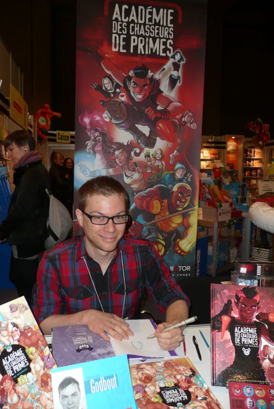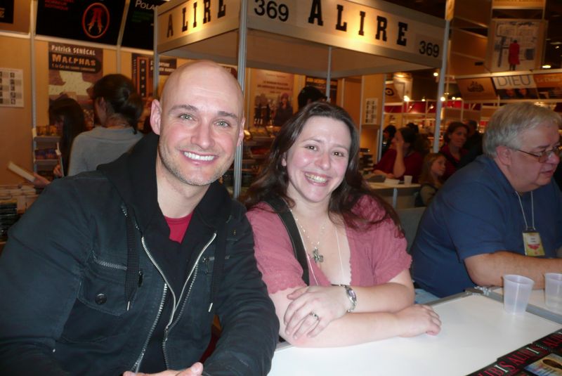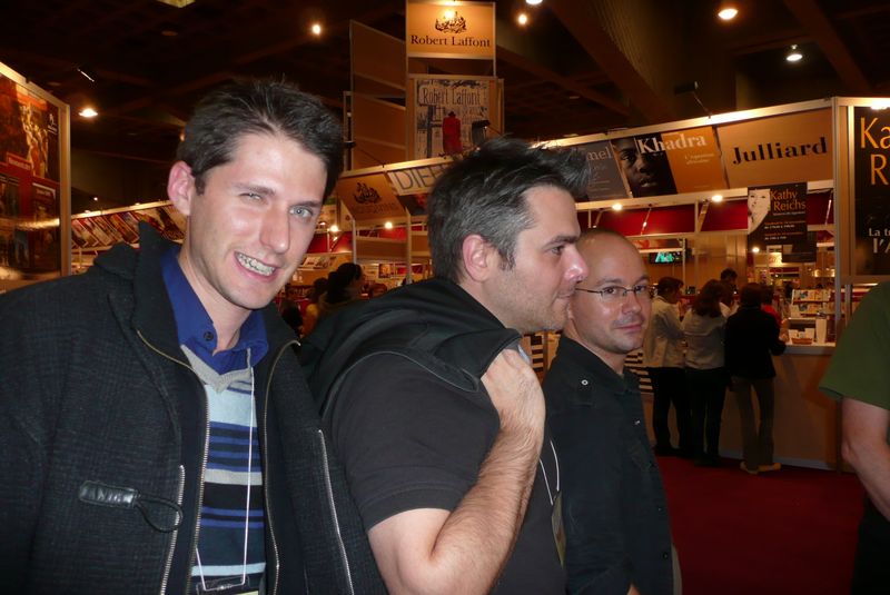 Pierre Lavigne (courageux éditeur), Jonathan Reynolds (centre), Mathieu Fortin (à droite) et une fan fantastique non identifiée!